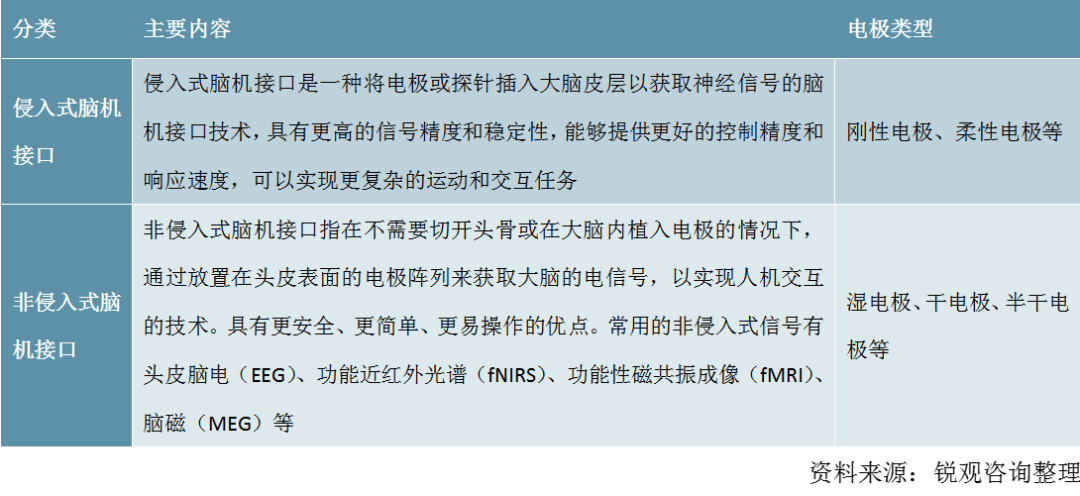 脑机接术是将人脑取计较机、外部设备等智能系统相连的一种手艺,它能够将人脑中的消息为计较机能够理解的信号,实现对机械的节制和交互。脑机接口电极是脑电信号的采集和获取的主要设备,按照按照信号采集体例分歧,次要分为侵入和非侵入两种手艺线。侵入式脑机接口电极次要分为刚性电极和柔性电极,非侵入式脑机接口次要分为湿电极、干电极和半干电极三种。