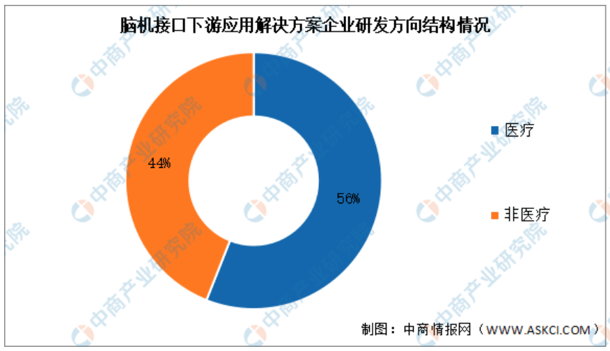 从使用场景来看,医疗健康范畴是脑机接术最早且最次要的使用标的目的,也是目前离贸易化比来的范畴,使用市场占比约为56%。跟着手艺成长,其使用范畴不竭拓展,涵盖工业、教育、交通、文娱等,非医疗范畴使用市场所计占比达44%!