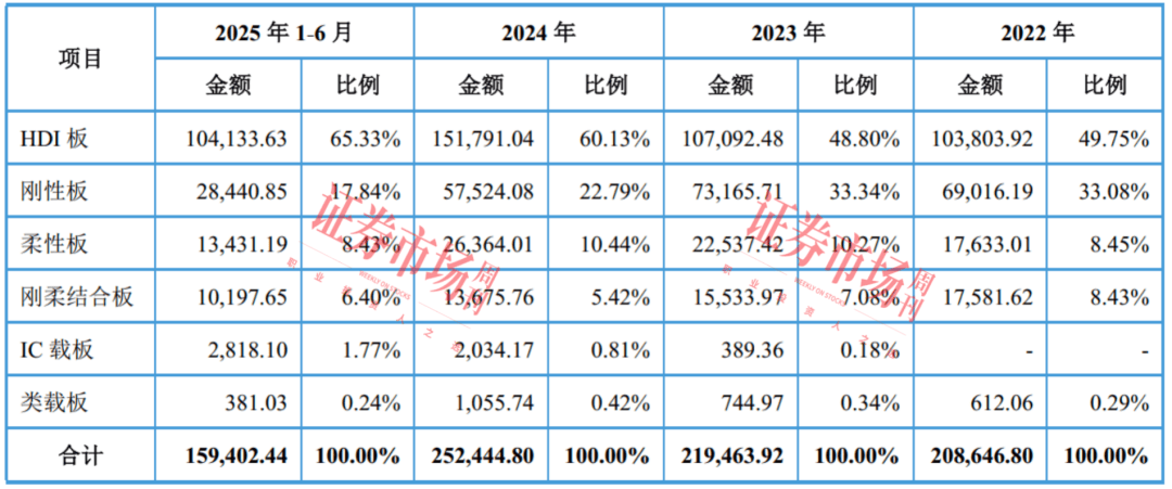 红板科技是专注于印制电板的研发、出产和发卖的企业,其产物包罗HDI板(高密度互连印制电板)、刚性板、柔性板、刚柔连系板、类载板、IC载板(间接用于搭载芯片的印制电板)等。此中,HDI板和刚性板是焦点产物,但两者近年收入贡献反向而行。此中,HDI板由2022年的49。75%提拔至2025年1-6月的65。33%;刚性板的收入占比由2022年的33。08%下降至2025年1-6月的17。84%。从产物的收入布局变化看,HDI板是红板科技近年成长的次要标的目的。