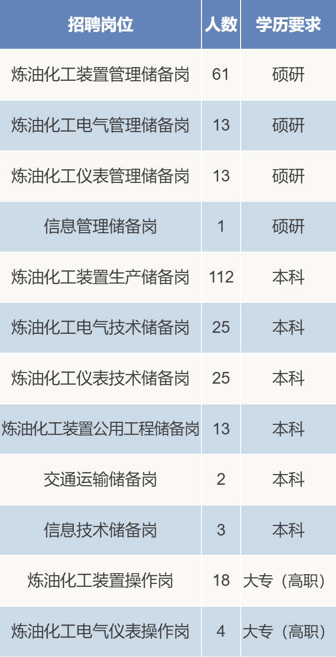 化学和化工类、高类、材料类、化工机械类、能源类、电气仪表类、热能动力类、油储类、工程类、平安环保类、给排水类、铁道运输类、帆海类以及消息手艺类等专业,具体详见中国石化人才聘请网坐。3。境外留学生雅思6。0分及以上或托福80分及以上,可视做合适英语要求;各岗亭具体要求详见聘请网坐。1。热爱石油石化事业,认同石油、石化保守,、操行规矩、连合协做,正在校期间无不良记实。2。身心健康,从命分派,能适招聘请岗亭工做需要,能持久正在出产一线。简历中需上传学历成就单(学校教务处等部分盖印)、外语成就证明 。住房补助、节日补助、高温津贴、职工平安保障险、健康体检、长工龄休假疗养、华诞蛋糕、免费工做餐、劳动、帮扶求帮。
